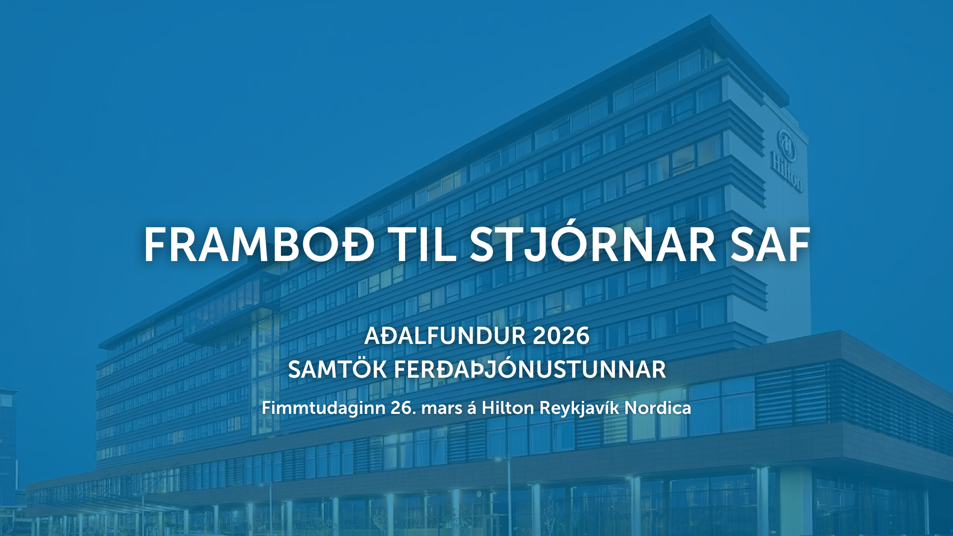 Aðalfundur Samtaka ferðaþjónustunnar 2026 fer fram fimmtudaginn 26. mars á Hilton Reykjavík Nordica. Faghópafundir aðalfundar verða haldnir fyrir hádegi og formlegur aðalfundur …
