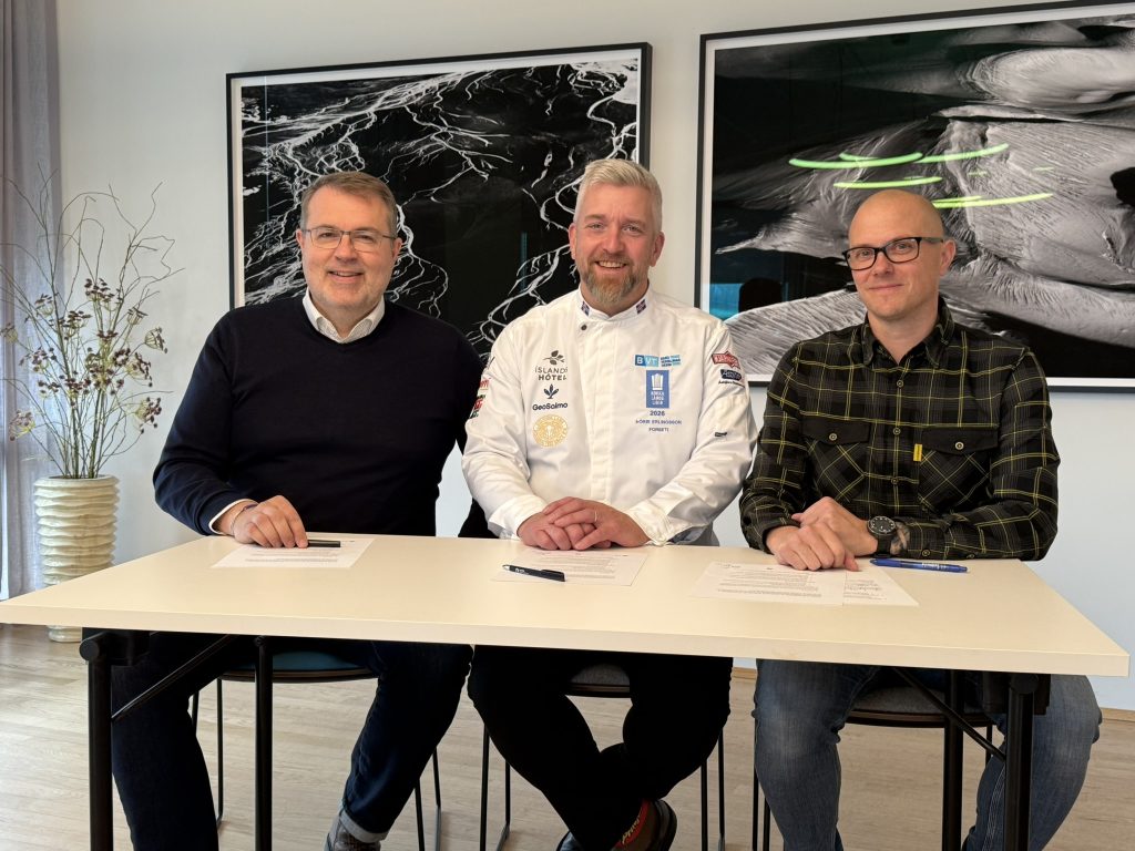 Á dögunum skrifuðu Jóhannes Þór Skúlason, framkvæmdastjóri Samtaka ferðaþjónustunnar, Óskar Hafnfjörð Gunnarsson, formaður MATVÍS og Þórir Erlingsson, forseti Klúbbs matreiðslumeistara undir nýjan samning um skipulag og framkvæmd Norrænu nemakeppninnar í matreiðslu og framreiðslu.