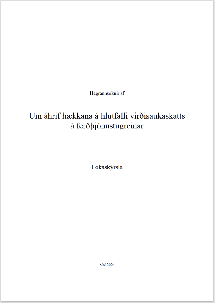 Samtökin óskuðu því eftir því við Hagrannsóknir sf. að nýta hið nýja þjóðhagslíkan með ferðaþjónustugeira sem gert var fyrir Ferðamálastofu til að vinna óháða rannsókn á raunáhrifum slíkrar grundvallarbreytingar á rekstrar- og samkeppnisumhverfi greinarinnar. Sérstaklega var horft til þess að sannreyna hvort þær tugmilljarða skatttekjur sem margir telja að muni skila sér til ríkisins með svona breytingu skili sér í raun og veru.